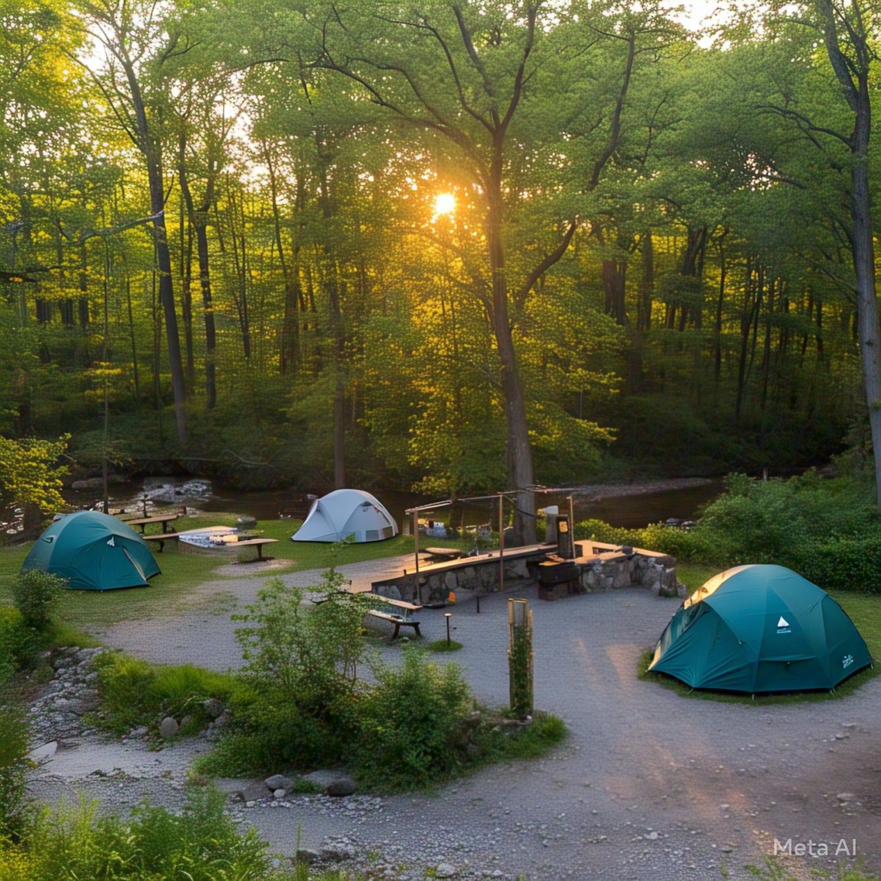 35 tent camp-site offering open space and ϔixed tent camping options.